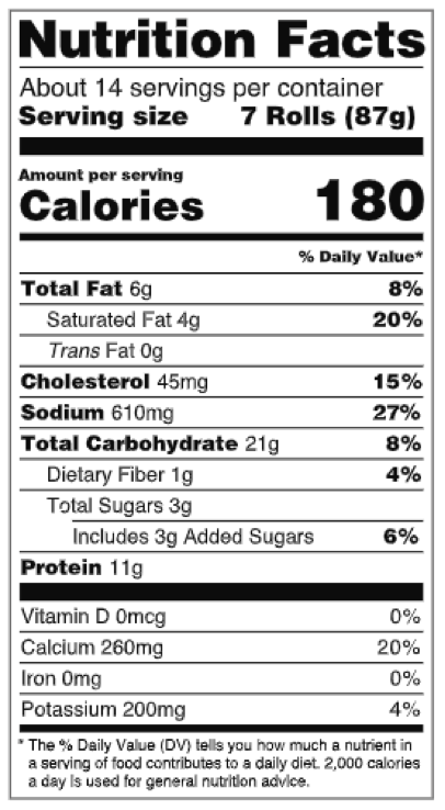 The Shrimp Rolls contained in this package are par-fried and should be heated thoroughly to 165°F. Depending on the number of portions prepared and oven temperature variances, heating times may need adjustment. Remove product from packaging. Avoid overcooking or undercooking, cook to a light golden brown.