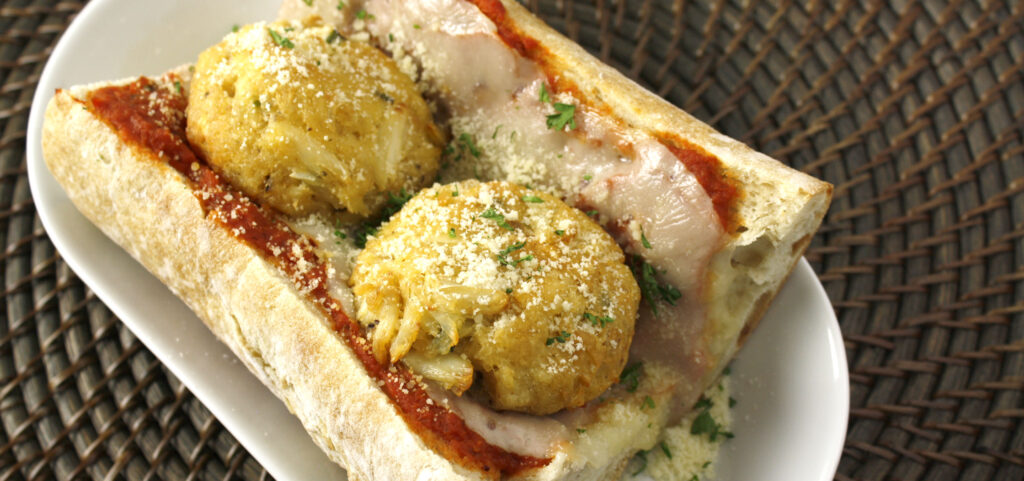 Enjoy a crispy Crab Cake Parmesan Sub loaded with golden crab cakes, melted mozzarella, and savory pasta sauce on toasted Italian rolls — a quick, delicious seafood sandwich perfect for any meal.