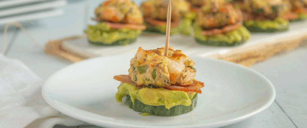 • Place a cooked Shrimp Power Bite on top of the guacamole.