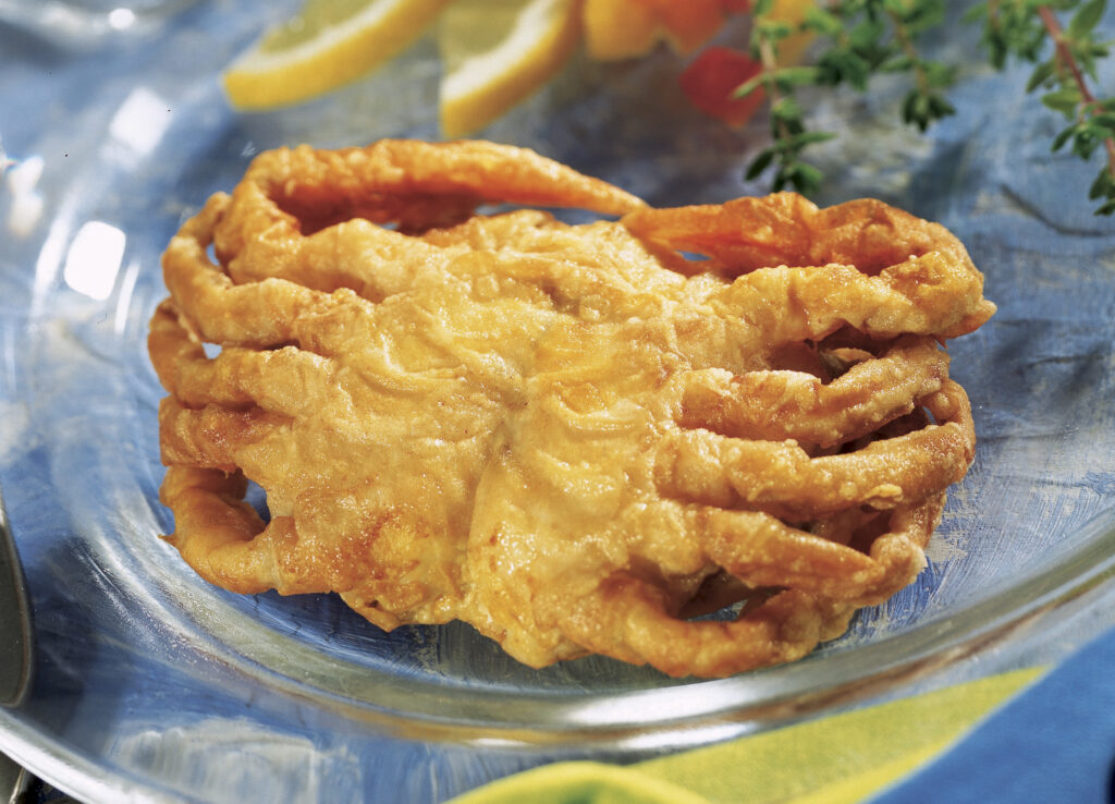 Handy Soft Shell Crabs are renowned for their sweet, delicate, and unique flavor. Fully cleaned and ready to cook, these crabs can be enjoyed whole—shell and all. This entrée features tempura-battered soft shell crabs, offering a crispy and flavorful main dish.