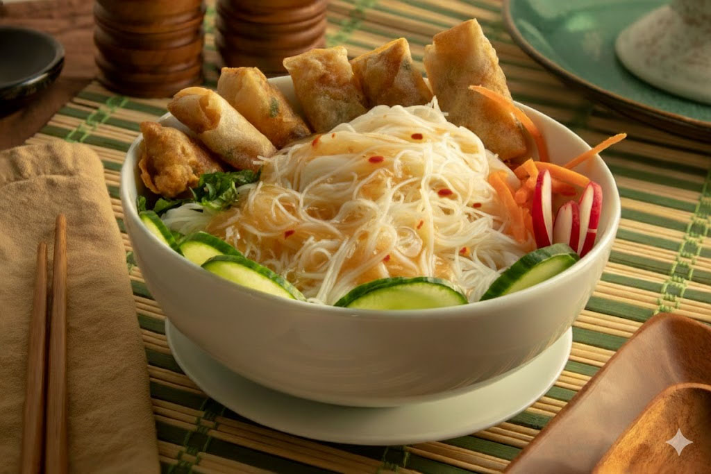 This Vietnamese Noodle Salad with Shrimp Rolls delivers a bright, refreshing meal packed with fresh vegetables, tender noodles, and crispy shrimp rolls—tossed in a tangy, Thai chili sauce. Perfect for a light lunch or vibrant dinner.